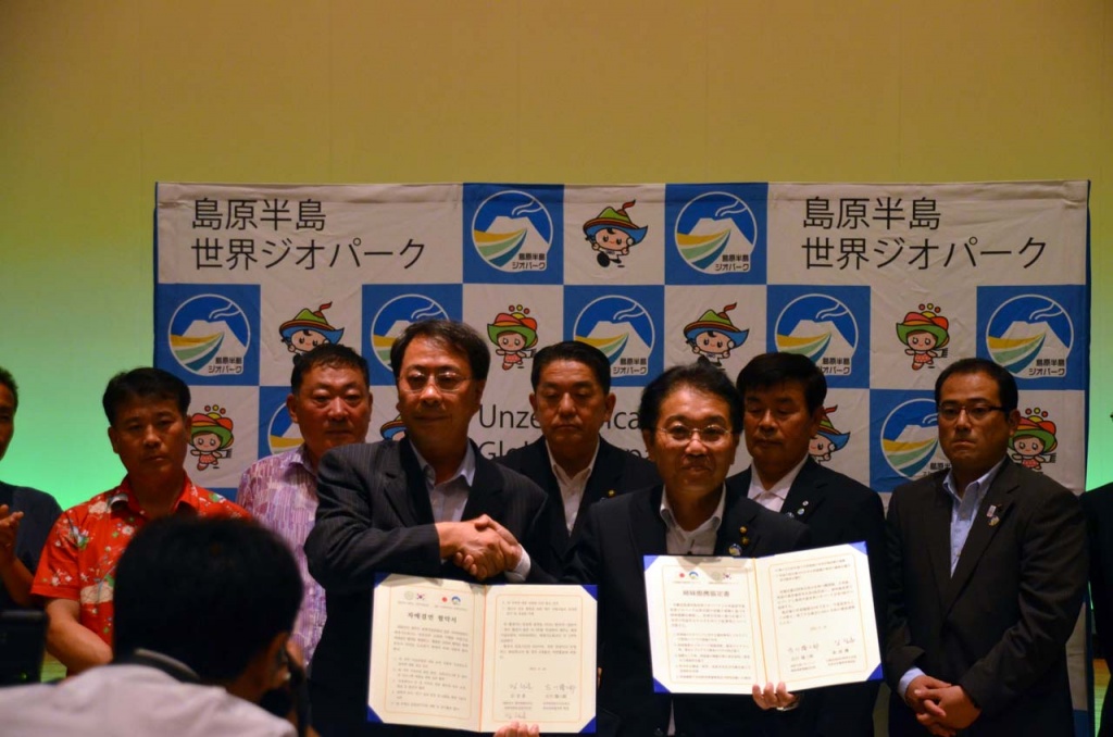 2013.8.24島原半島ジオパークは、韓国の済州島ジオパークと姉妹提携を締結しました。