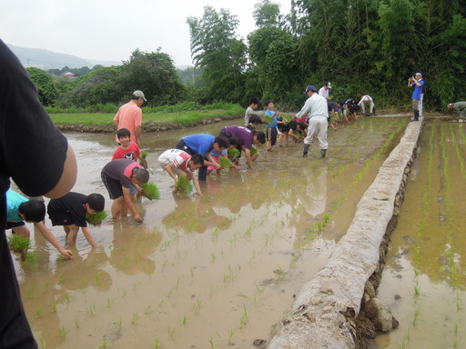 天気はあまり良いとは言えませんでしたが、子どもたちは元気に稲を植えていました。