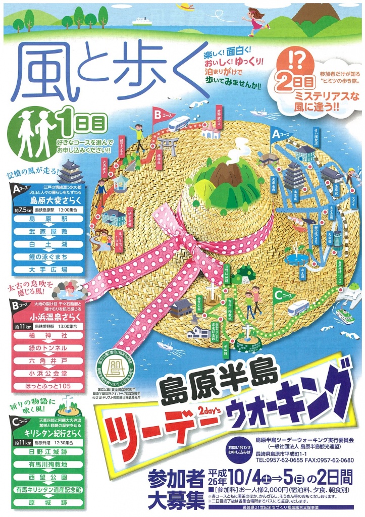 島原半島を構成する3市それぞれから選んで歩くコース(1日目)とミステリーコース(2日目)があります。