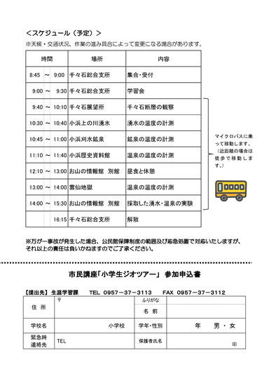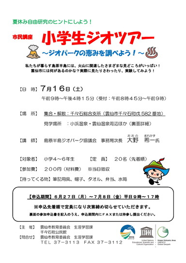 雲仙市市民講座「小学生ジオツアー~ジオパークの恵みを調べよう~」